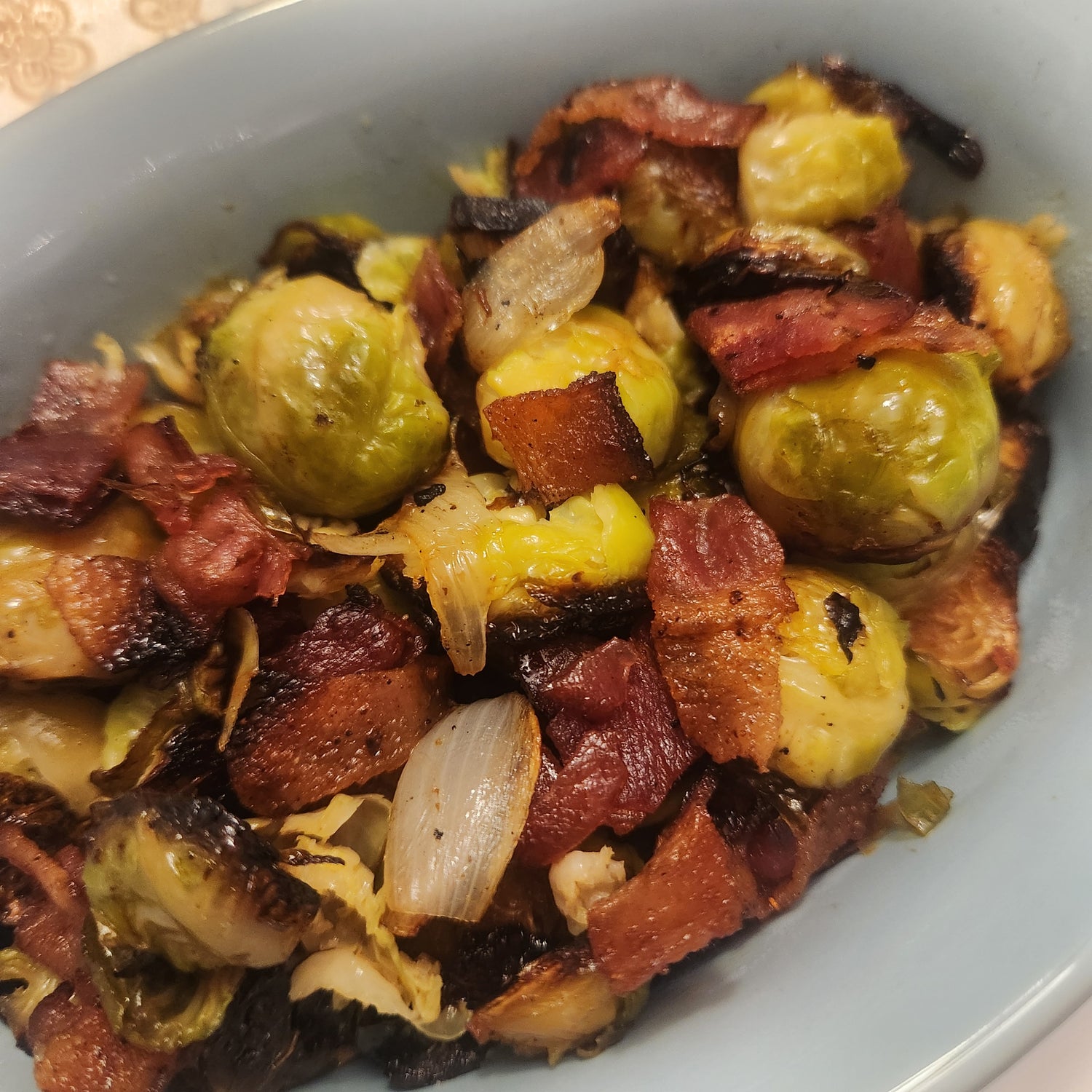 Use 1 tsp of Piri Piri for every 2 Tablespoons of Maple syrup and 8 slices of bacon. Coat and cut the bacon in 1 inch pieces. Add in the last 5 minutes of roasting brussels sprouts, tossing to coat in the spiced maple syrup. Not a fan of bacon? Swap it for pecans!